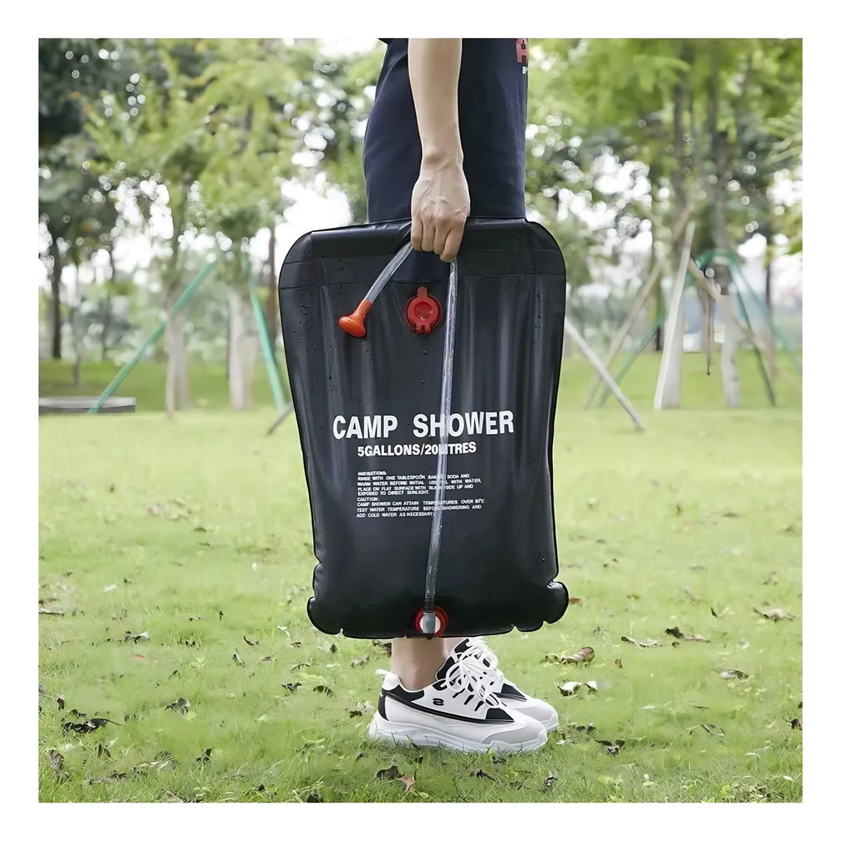 Fabricada en PVC resistente, esta bolsa de ducha es duradera y está diseñada para soportar las condiciones más difícicas. Con una capacidad de 20 litros, proporciona suficiente agua para una ducha refrescante después de un largo día de actividades al aire libre.