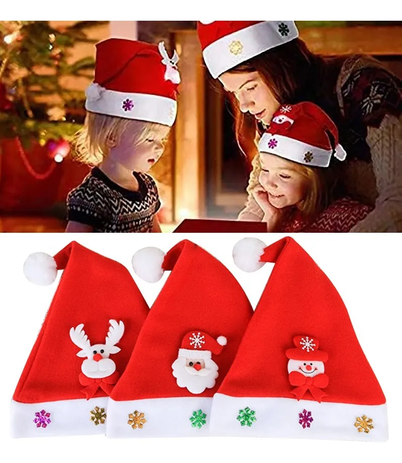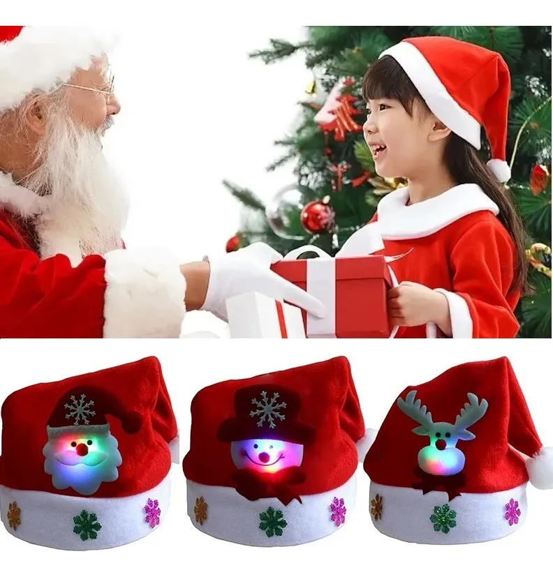 Haz que esta temporada brille con nuestros gorros navideños clásicos, diseñados para encender sonrisas y corazones. Con adorables figuras de Santa Claus, Muñeco de Nieve y Reno, estos gorros son el accesorio perfecto para niños y adultos que quieren celebrar con alegría, color y un toque de luz.