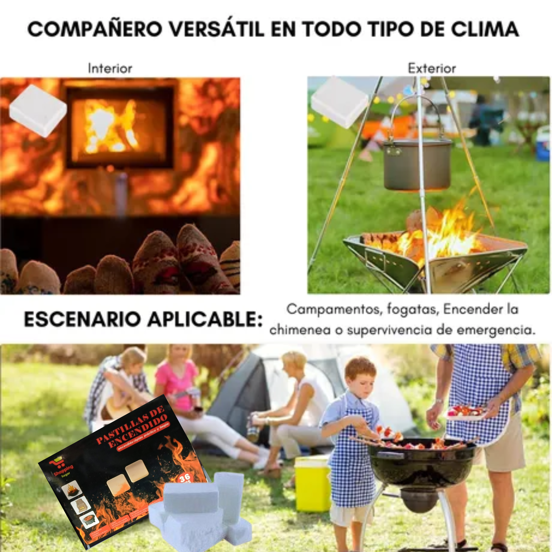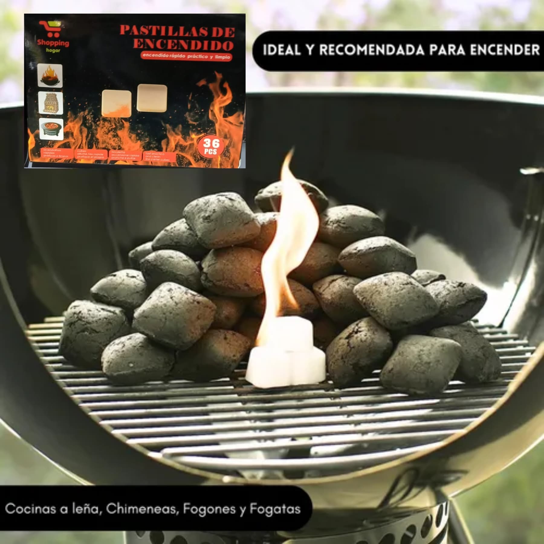 Las pastillas de encendido rápido son pequeños bloques sólidos, generalmente de material combustible comprimido (como parafina o serrín tratado), diseñadas para encender fácilmente el carbón o la leña sin necesidad de papel, líquidos inflamables ni esfuerzo excesivo.